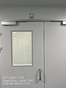 An additional light signal, placed above each door, indicates whether or not it is safe to enter the room. This light signal is controlled by the differential pressure feedback. In addition to the simple interloc, the operator must also check that the pressure is correct using this simple light signal.